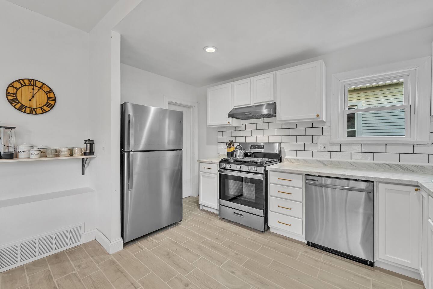 Just 2 short blocks from the sprawling sandy shores of the famous North Beach, this stunning 4 bedroom 2 full baths newly-renovated beach house is your refreshing Racine retreat! Spacious single-story home with sprawling layout, fenced backyard, driveway parking, on-site laundry and more offers all the comforts and contemporary style you’ll need for an unforgettable vacation.