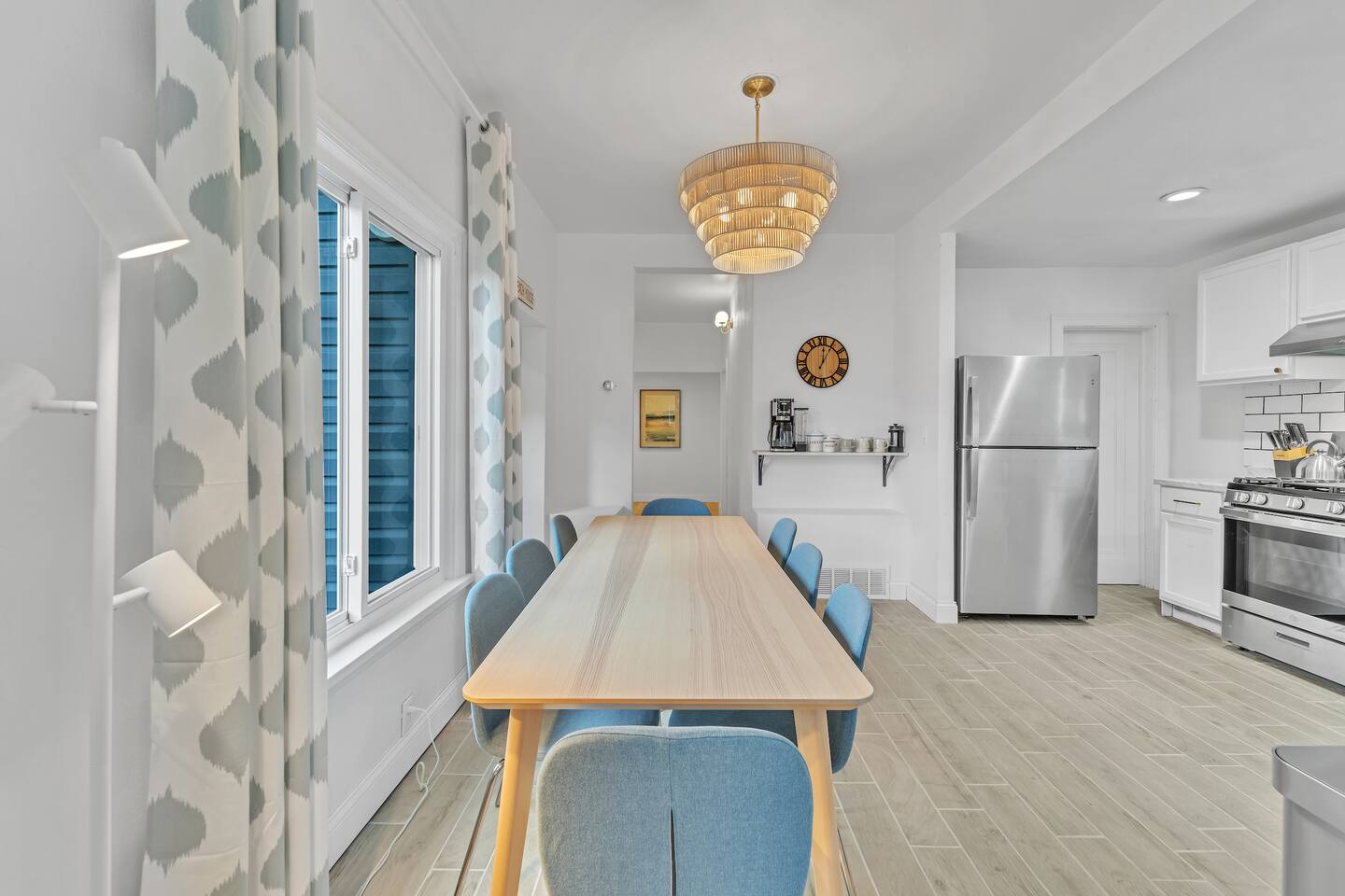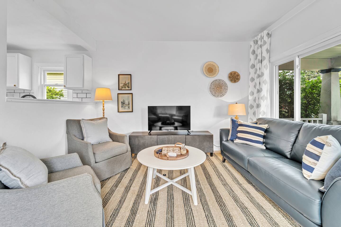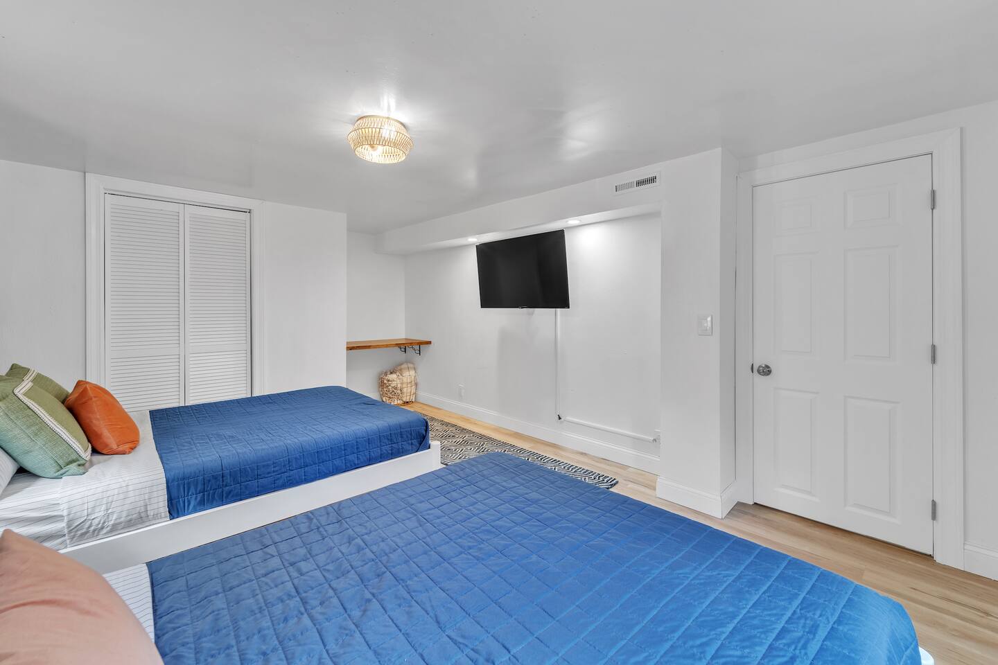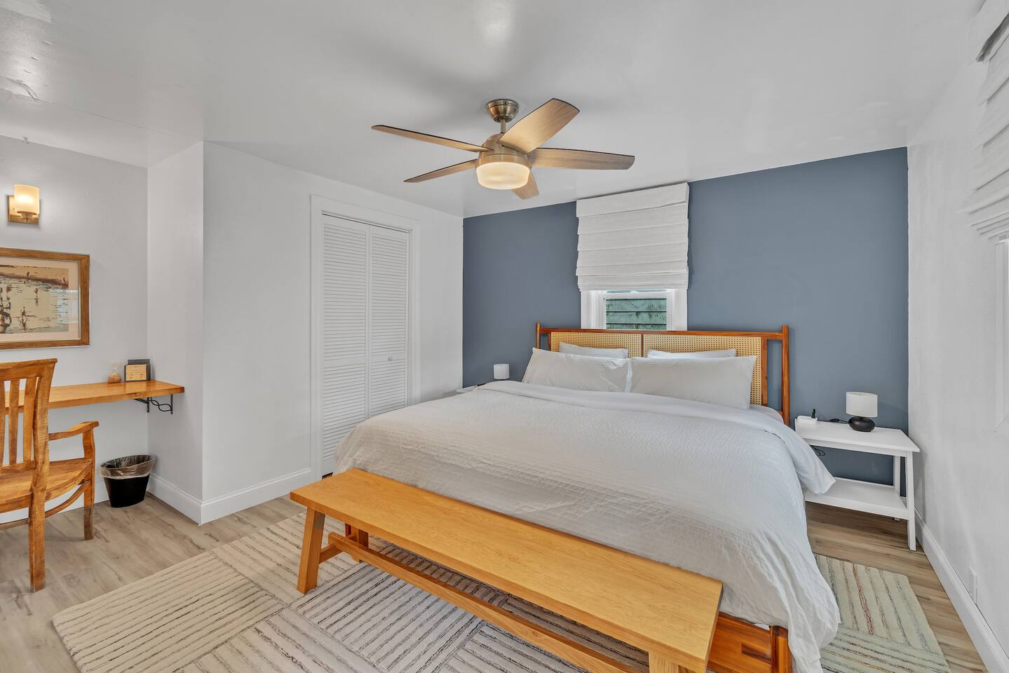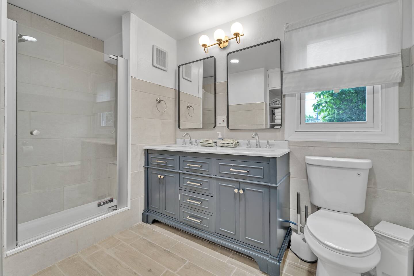 We finished an extensive full renovation in summer 2024, topped off by adding all brand new everything: furnishings, window treatments, linens, kitchen items, appliances… virtually every single item in the house is new! Up to 12 people can sleep quite comfortably, enjoying a master king bedroom, a queen bedroom, one double queen bedroom, and a 4th bedroom with a single-over-double bunk plus single pull-out trundle bed. All bedrooms except the bunk bed room include a closet or dresser drawers for your items.
