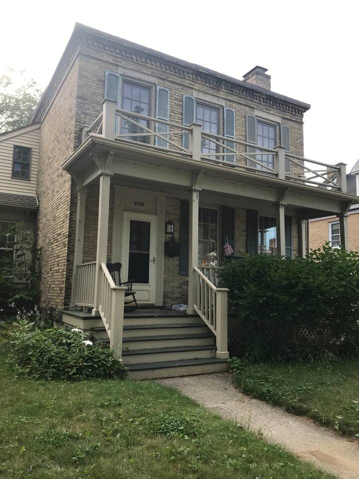The entire home will be open to you and just you! Large formal dining room, fully stocked kitchen, leather couches in the living room and TV area, and the beds are actually better than what's pictured now as we recently updated them. The master is now a king, with a twin tucked into a side cutout, and the second bedroom no longer has the bunks, it now has a queen and a twin. There is a couch and three very large live palms in the 2-story sunroom, plus doors so you can close it off to the rest of the house - maybe sneak in a little alone relaxation time? Most common feedback we receive is that our home is: - very kid and pet friendly (plenty of toys, plus other kid items available like changing table, games, books, high chair converter to strap on pull-out baby gate at top of stairs, pack-n-play with sheets, etc) and dogs love the fenced in yard. - uniquely historic with charm and character! People consider the 1890s historic, we've got 40 years on them! Out of the ordinary, not just another regular "generic" house! Interesting, fun to look around, interesting artifacts from the history of the house out for viewing. - comfortable and relaxing, we go out of our way to make sure you have what you need. More intangible though, is the cozy and friendly VIBE, which is impossible to precisely translate with words. We also clean and sanitize with environmentally-friendly products. Linens and towels are all laundered with free and clear detergent. Available in the house not already mentioned: Hair dryer Iron and ironing board Fans and space heaters for bedrooms Coffee maker Coffee Fully stocked kitchen (utensils, pots and pans, spices and oils, etc) Crock pot Shampoo, Conditioner, body wash Child’s high chair (booster style with belt) Beach toys Beach blanket, cooler bag and beach towels Air purifier Free off street parking in driveway Lots of extra blankets and pillows Plenty more, ask for what you might need! The house is in walking distance to lake and shops. North Beach and Zoo beach are the prime spots for swimming, just two-miles away. Happy to give you great recommendations for local restaurants in Racine or our favorites in Milwaukee, 35 minutes away. We live a few blocks away and this was our family home for several years. We loved it too much to sell it, so here it is on Airbnb instead!