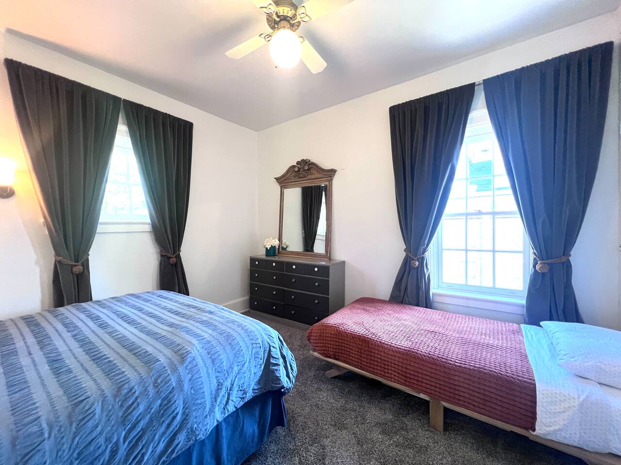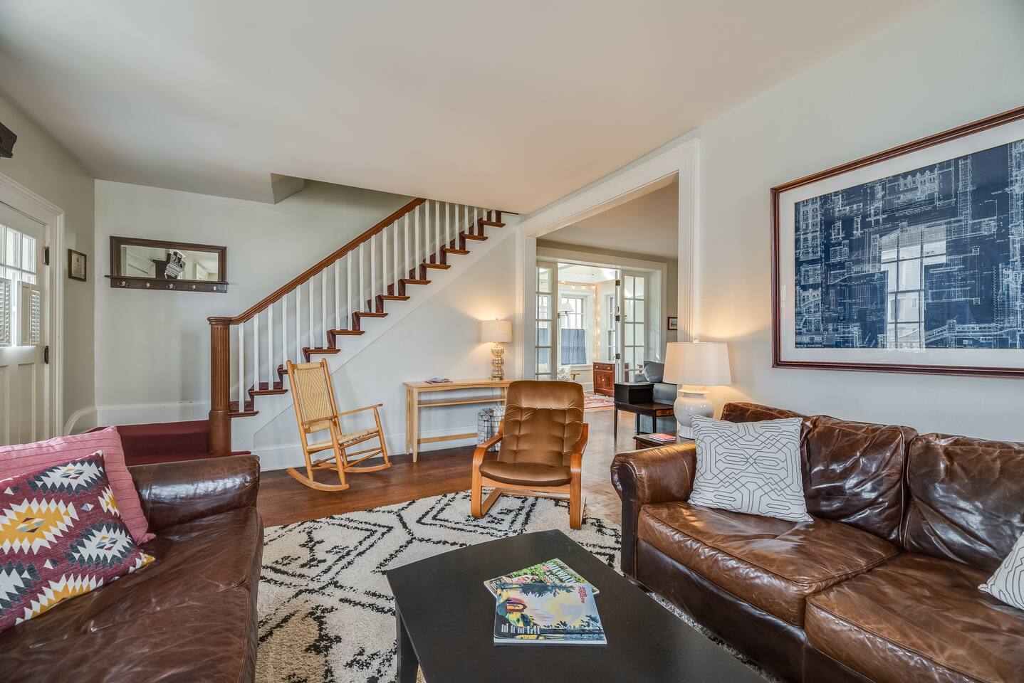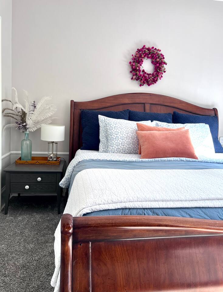 Full bath is located on second floor, half bath on first floor through the bedroom. 2 beds that sleep three downstairs, 4 beds that sleep 6 upstairs. Front door and backyard security camera for safety. Important: we do not allow smoking of any kind in the house. If we suspect smoking in the house you will be asked to leave. If the house smells of smoke when you leave, you will be charged for the remediation. It is quite an ordeal to wash every piece of fabric in the house, get all the carpets cleaned, etc and we simply cannot have it happen. We live nearby and keep a close connection to the neighbors. We do not allow parties beyond the total guest limit or additional guests coming and going from the house. Of course there could be special exceptions with limited guests visiting if given permission in advance, however. Thank you for being respectful.