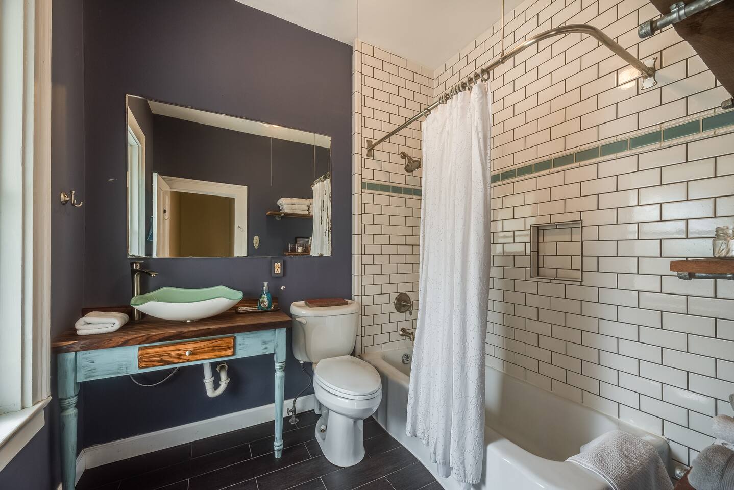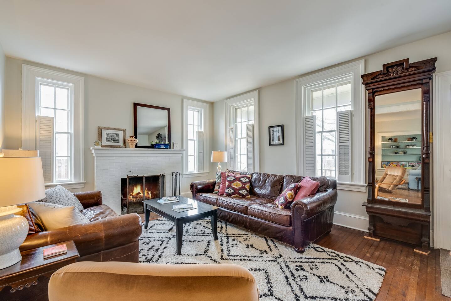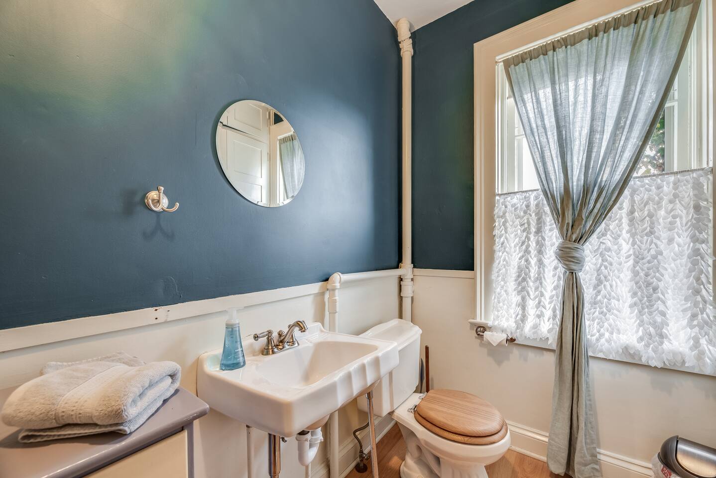 Full bath is located on second floor, half bath on first floor through the bedroom. 2 beds that sleep three downstairs, 4 beds that sleep 6 upstairs. Front door and backyard security camera for safety. Important: we do not allow smoking of any kind in the house. If we suspect smoking in the house you will be asked to leave. If the house smells of smoke when you leave, you will be charged for the remediation. It is quite an ordeal to wash every piece of fabric in the house, get all the carpets cleaned, etc and we simply cannot have it happen. We live nearby and keep a close connection to the neighbors. We do not allow parties beyond the total guest limit or additional guests coming and going from the house. Of course there could be special exceptions with limited guests visiting if given permission in advance, however. Thank you for being respectful.