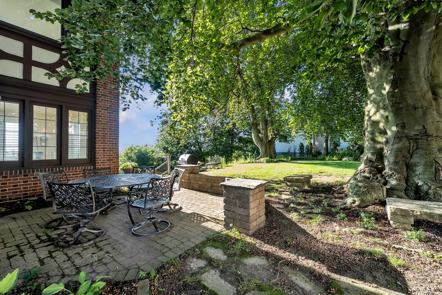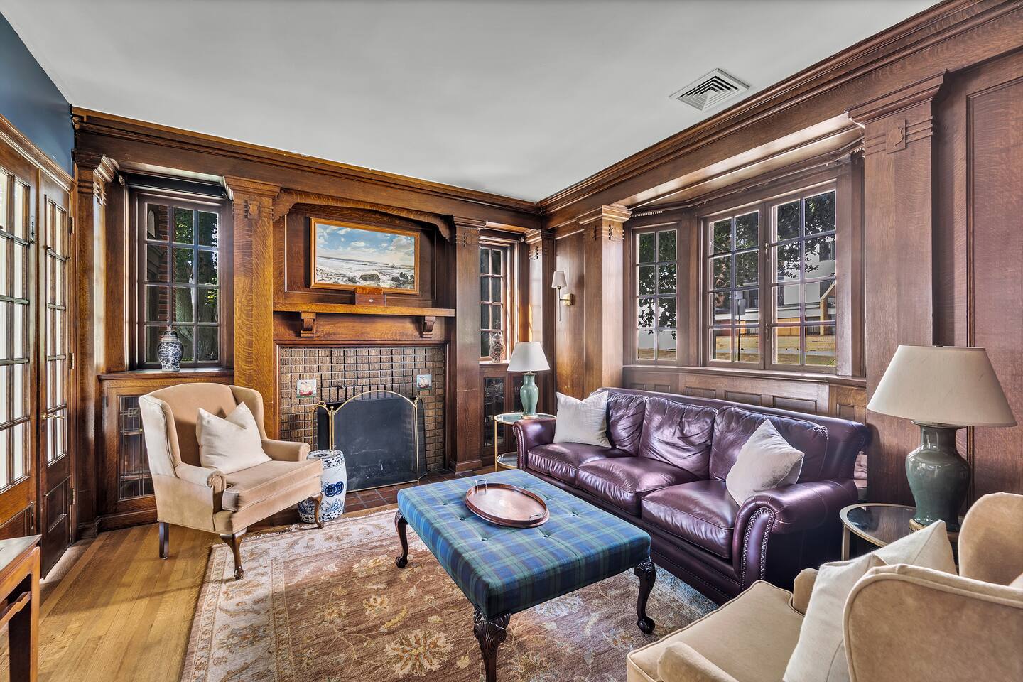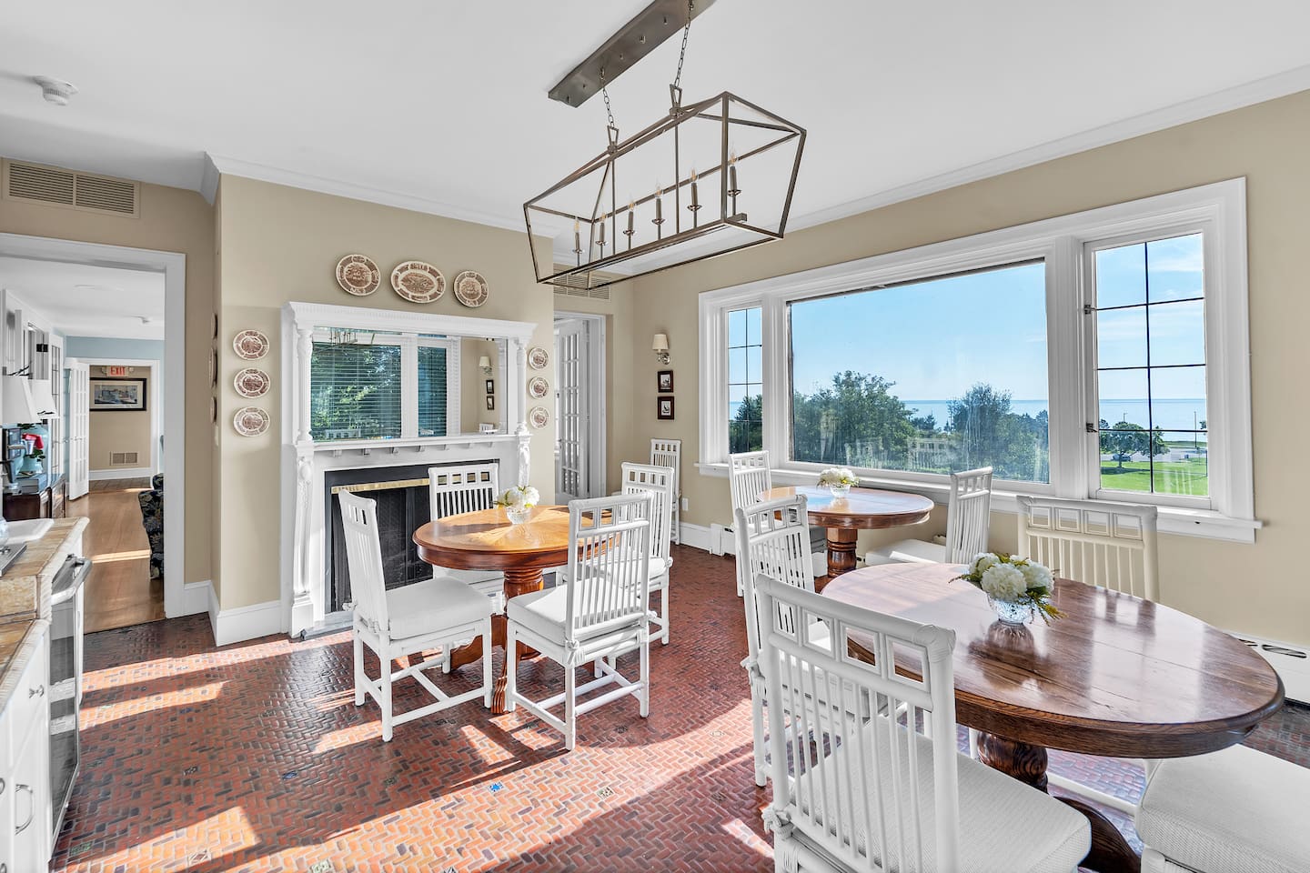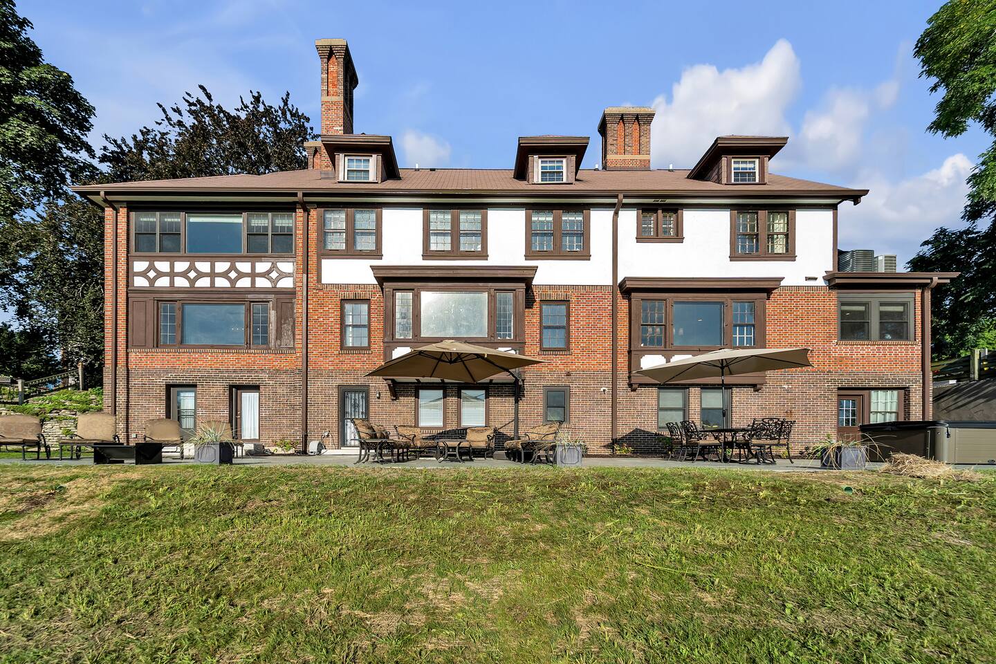 Welcome to your perfect Lake Michigan retreat! This spacious 8-bedroom Tudor mansion blends historic charm with modern comforts, offering a thoughtfully designed layout with ample room for families and groups. 🛏 Bedrooms & Bathrooms All 8 bedrooms include private en suite bathrooms with showers, TVs, and in-room Keurig coffee machines. • Main Floor Bedroom: Queen bed with ADA-accessible bathroom. • Primary Suite (2nd Floor): King bed, two fireplaces, private sunroom with lake views, and a luxurious bathroom featuring a standalone bathtub in front of a gas fireplace, rain shower, and customizable lighting. • Additional 2nd Floor Bedrooms: Two king rooms and one queen room. • 3rd Floor Nook: A cozy reading/chat space with a queen sleeper sofa. • 3rd Floor Family Suites: • Large Suite: 1 king, 1 twin, and a full-size crib. • Smaller Suite: 1 queen and 1 twin. • Walkout Basement Bunk Room: 3 bunk beds (5 twins + 1 full), perfect for kids. 🍽 Dining Spaces Multiple dining areas provide flexibility for group meals and cozy conversations: • Main dining room seats 8 (+2 at the bar) • Main floor sunroom seats 12 • Living room window nook seats 3 • Upper patio seats 6 • Lower patio seats 10 🍳 Kitchen & Coffee Enjoy a fully functional kitchen, plus: • Charcoal grill (upper patio) • Gas grill (lower patio) • Commercial coffee machine in sunroom for group brewing 🛋 Lounge & Living Areas You’ll find plenty of spaces to unwind or gather: • Living room with dual sofas for separate conversations • Cozy library with a moody ambiance—perfect for a chilly day • Primary suite sunroom for quiet work or reading • 3rd floor nook • Basement game room • Downstairs patio with 4 loungers, 2 sofas, and 2 deep-seat rockers 🎲 Game & Entertainment Zones The walkout basement is packed with family fun: • Game room with foosball and card table • Theater/arcade room with 80” TV, leather sectional, racing game, Buck Hunt, dart board, and a giant bean bag • Bunk room with toys and building blocks for young kids, including Quatro Legos, Zoobs, puzzles, wood trains, and Beanie Babies 🌊 Outdoor Fun & Lake Gear • Kayak room with 2 kids’ kayaks and 2 adult Origami Paddlers (kayak or stand-up paddle), life vests, and a cart to the beach • Outdoor games: glow-in-the-dark yard darts, whiffle ball, soccer balls, basketball hoop, fishing gear, kites, and a 30’ slip-n-slide • Bikes (2 medium-sized), beach wagon, sand toys, 14 beach chairs, and lots of towels • Tree swing at the edge of the yard for multiple kids • 7-person hot tub with lake views • Ping pong table on patio • Two fire pits for cozy nights and s’mores 🧺 Laundry Laundry’s easy with two new washer/dryer sets in the laundry room next to the kayak area.