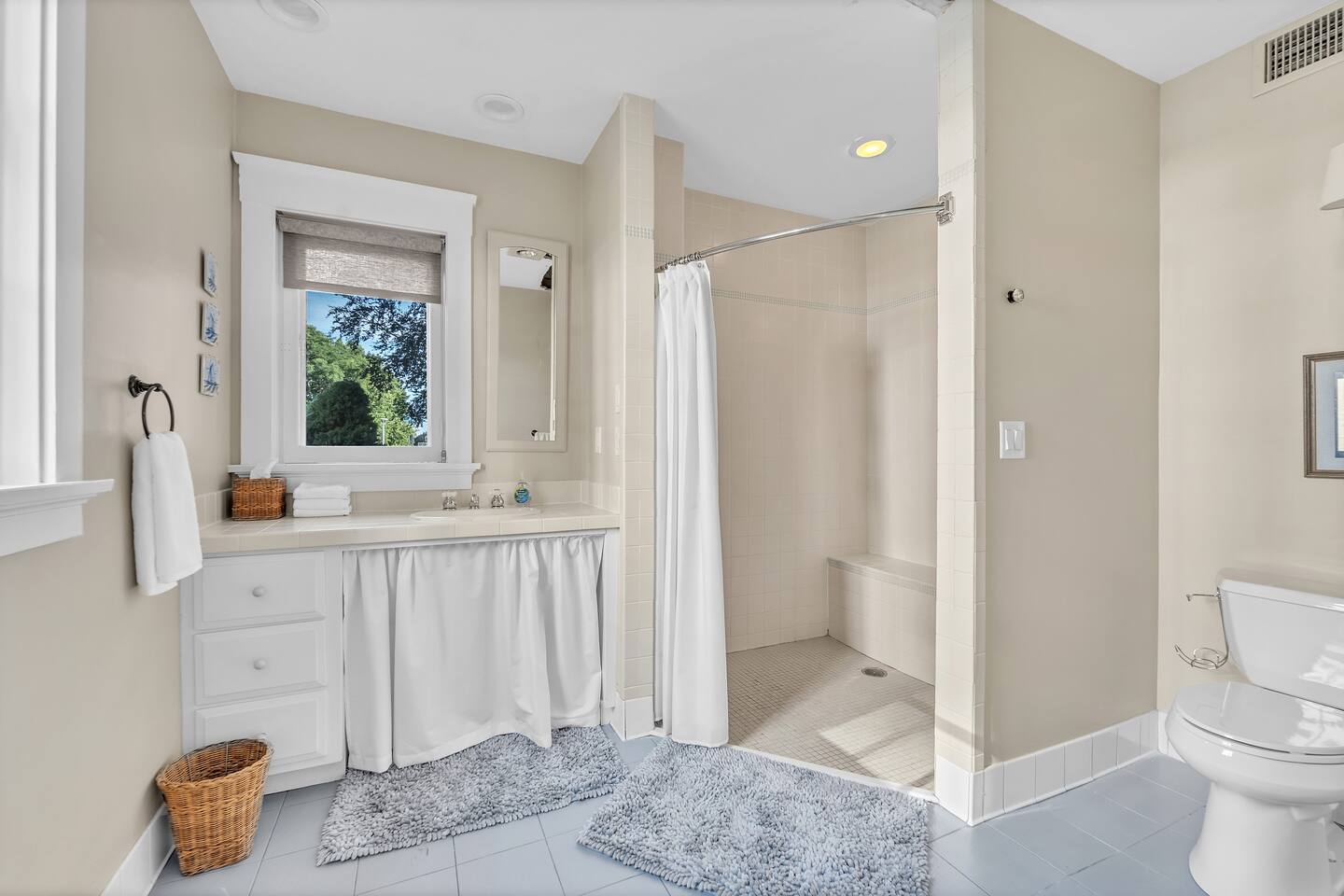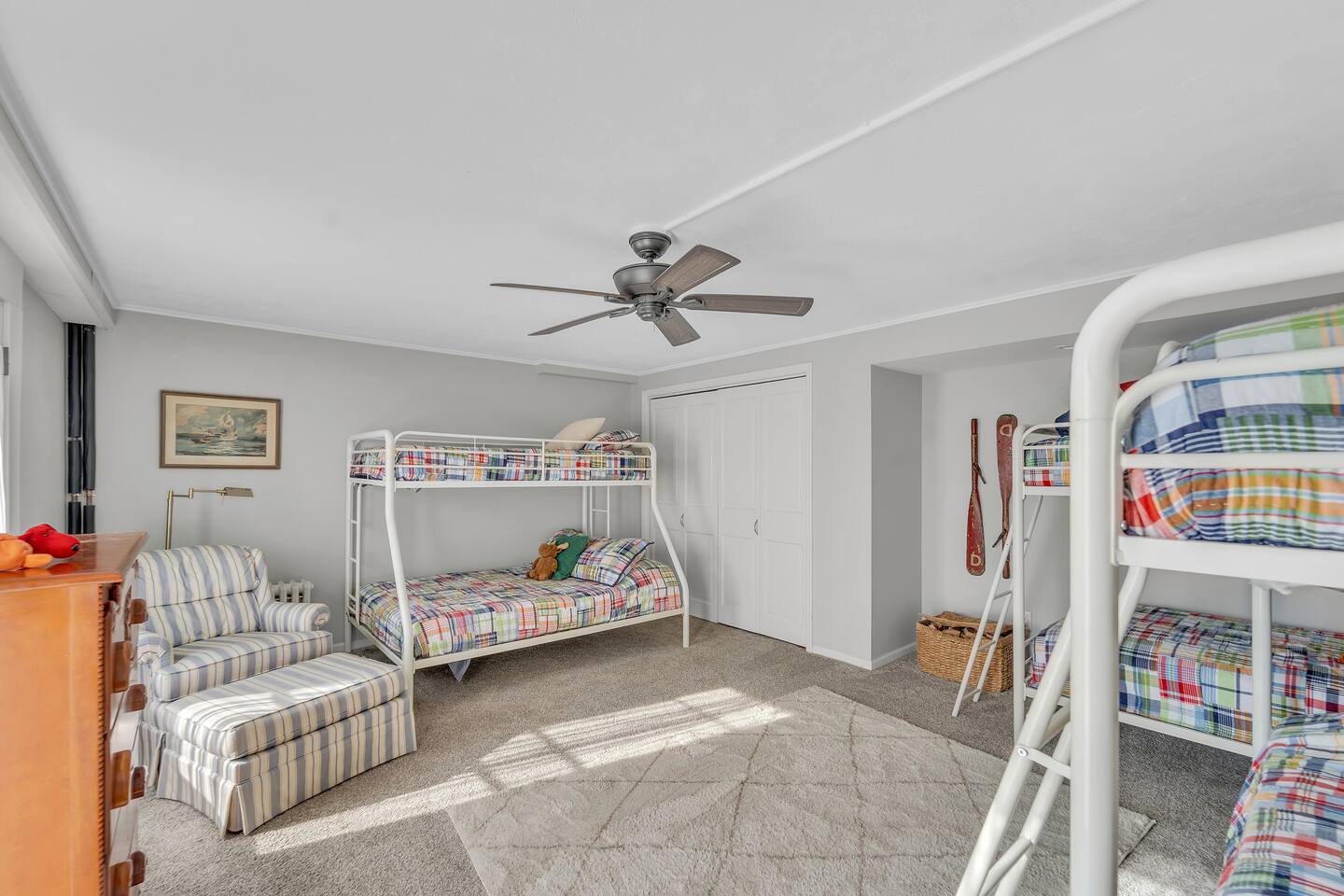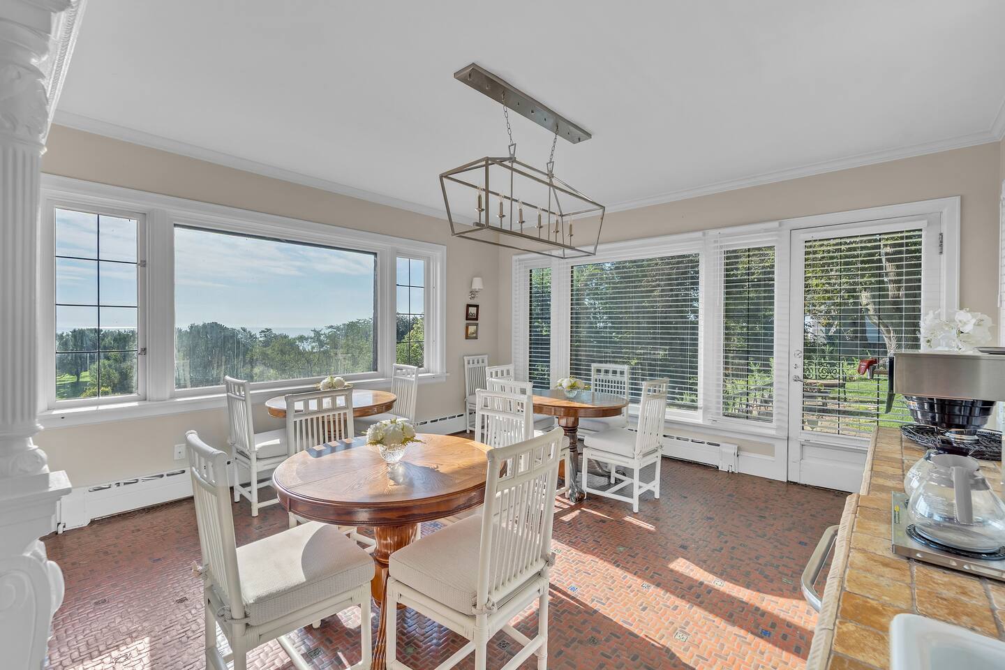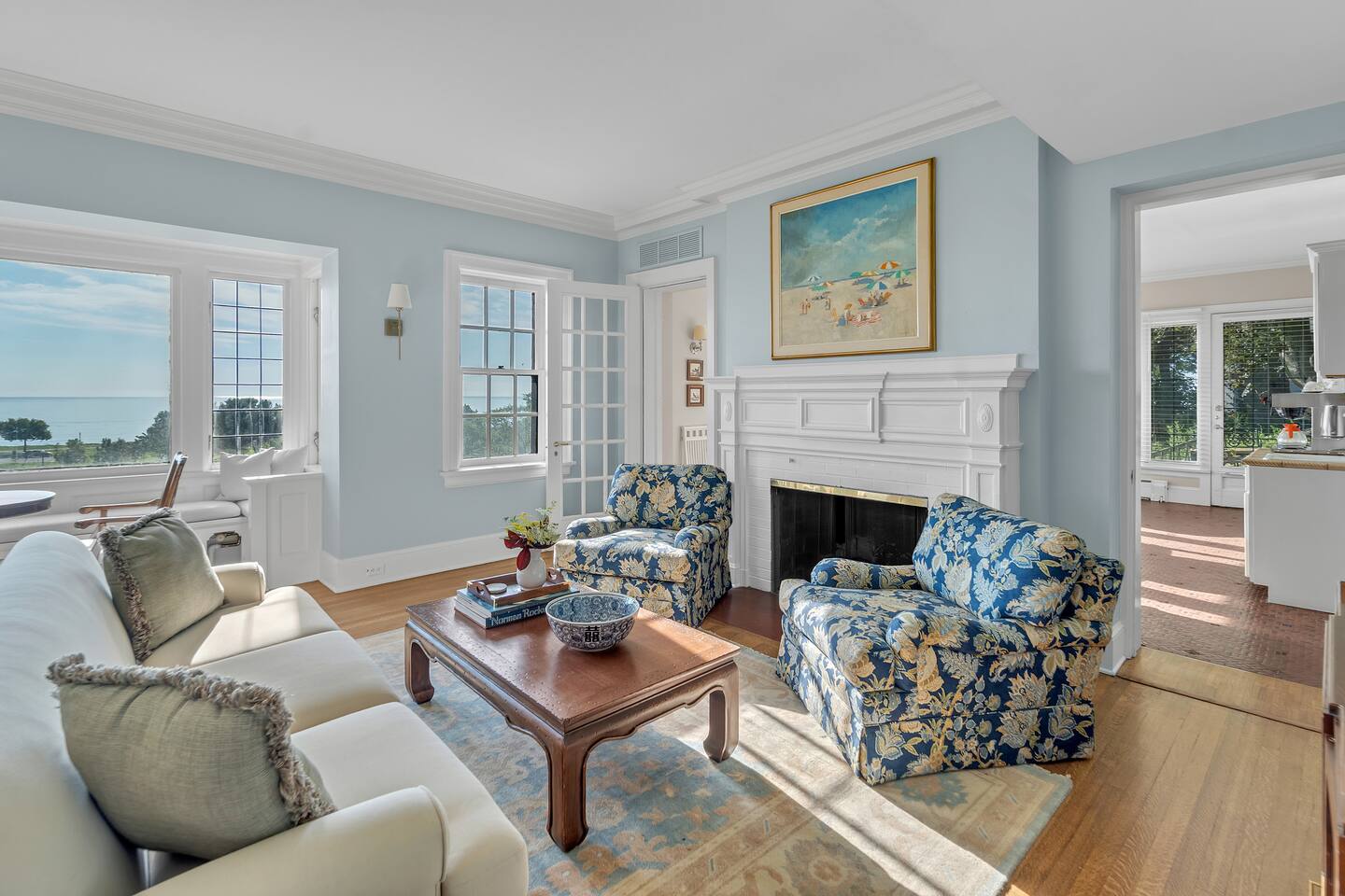 Welcome to your perfect Lake Michigan retreat! This spacious 8-bedroom Tudor mansion blends historic charm with modern comforts, offering a thoughtfully designed layout with ample room for families and groups. 🛏 Bedrooms & Bathrooms All 8 bedrooms include private en suite bathrooms with showers, TVs, and in-room Keurig coffee machines. • Main Floor Bedroom: Queen bed with ADA-accessible bathroom. • Primary Suite (2nd Floor): King bed, two fireplaces, private sunroom with lake views, and a luxurious bathroom featuring a standalone bathtub in front of a gas fireplace, rain shower, and customizable lighting. • Additional 2nd Floor Bedrooms: Two king rooms and one queen room. • 3rd Floor Nook: A cozy reading/chat space with a queen sleeper sofa. • 3rd Floor Family Suites: • Large Suite: 1 king, 1 twin, and a full-size crib. • Smaller Suite: 1 queen and 1 twin. • Walkout Basement Bunk Room: 3 bunk beds (5 twins + 1 full), perfect for kids. 🍽 Dining Spaces Multiple dining areas provide flexibility for group meals and cozy conversations: • Main dining room seats 8 (+2 at the bar) • Main floor sunroom seats 12 • Living room window nook seats 3 • Upper patio seats 6 • Lower patio seats 10 🍳 Kitchen & Coffee Enjoy a fully functional kitchen, plus: • Charcoal grill (upper patio) • Gas grill (lower patio) • Commercial coffee machine in sunroom for group brewing 🛋 Lounge & Living Areas You’ll find plenty of spaces to unwind or gather: • Living room with dual sofas for separate conversations • Cozy library with a moody ambiance—perfect for a chilly day • Primary suite sunroom for quiet work or reading • 3rd floor nook • Basement game room • Downstairs patio with 4 loungers, 2 sofas, and 2 deep-seat rockers 🎲 Game & Entertainment Zones The walkout basement is packed with family fun: • Game room with foosball and card table • Theater/arcade room with 80” TV, leather sectional, racing game, Buck Hunt, dart board, and a giant bean bag • Bunk room with toys and building blocks for young kids, including Quatro Legos, Zoobs, puzzles, wood trains, and Beanie Babies 🌊 Outdoor Fun & Lake Gear • Kayak room with 2 kids’ kayaks and 2 adult Origami Paddlers (kayak or stand-up paddle), life vests, and a cart to the beach • Outdoor games: glow-in-the-dark yard darts, whiffle ball, soccer balls, basketball hoop, fishing gear, kites, and a 30’ slip-n-slide • Bikes (2 medium-sized), beach wagon, sand toys, 14 beach chairs, and lots of towels • Tree swing at the edge of the yard for multiple kids • 7-person hot tub with lake views • Ping pong table on patio • Two fire pits for cozy nights and s’mores 🧺 Laundry Laundry’s easy with two new washer/dryer sets in the laundry room next to the kayak area.