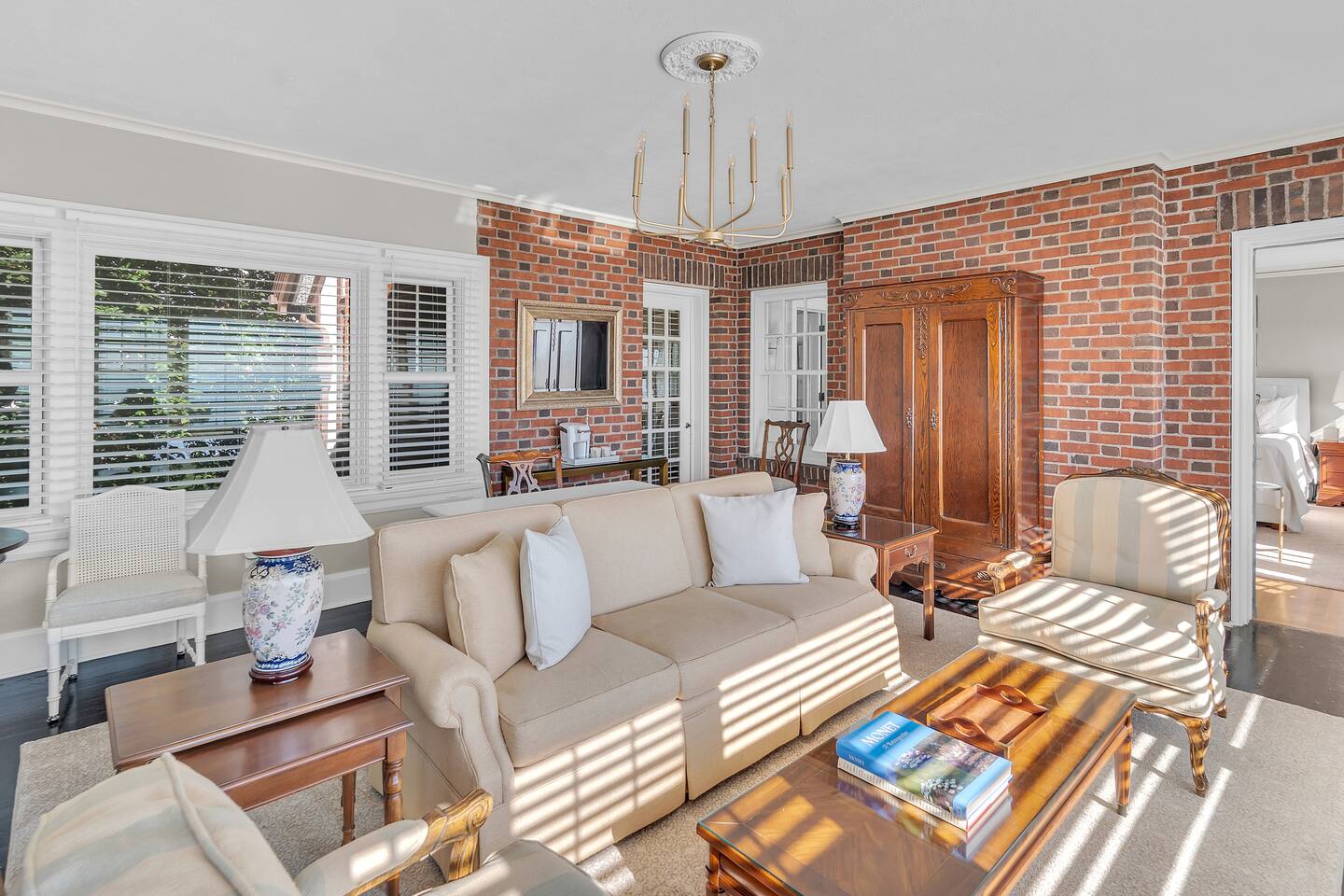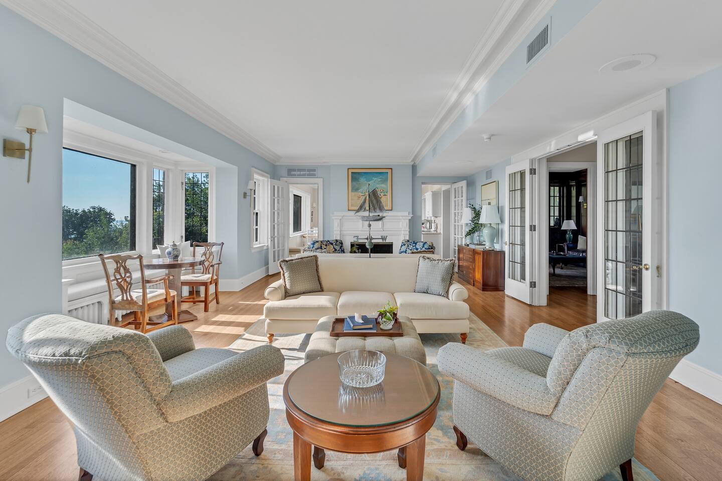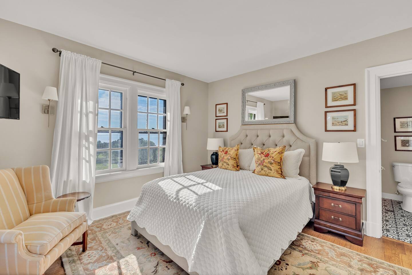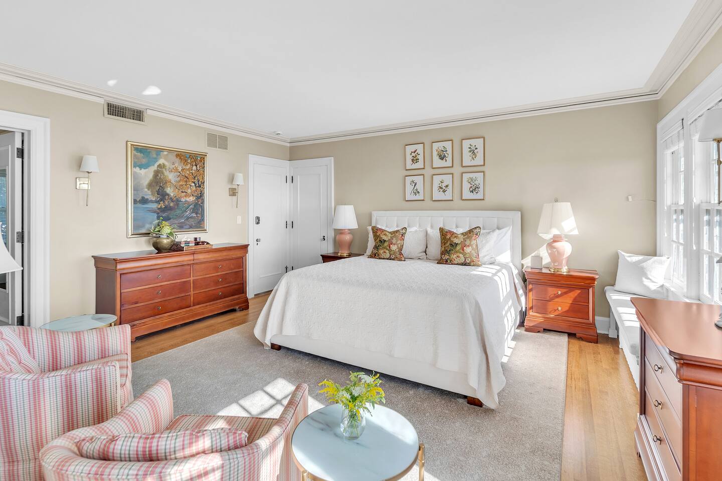 Welcome to your perfect Lake Michigan retreat! This spacious 8-bedroom Tudor mansion blends historic charm with modern comforts, offering a thoughtfully designed layout with ample room for families and groups. 🛏 Bedrooms & Bathrooms All 8 bedrooms include private en suite bathrooms with showers, TVs, and in-room Keurig coffee machines. • Main Floor Bedroom: Queen bed with ADA-accessible bathroom. • Primary Suite (2nd Floor): King bed, two fireplaces, private sunroom with lake views, and a luxurious bathroom featuring a standalone bathtub in front of a gas fireplace, rain shower, and customizable lighting. • Additional 2nd Floor Bedrooms: Two king rooms and one queen room. • 3rd Floor Nook: A cozy reading/chat space with a queen sleeper sofa. • 3rd Floor Family Suites: • Large Suite: 1 king, 1 twin, and a full-size crib. • Smaller Suite: 1 queen and 1 twin. • Walkout Basement Bunk Room: 3 bunk beds (5 twins + 1 full), perfect for kids. 🍽 Dining Spaces Multiple dining areas provide flexibility for group meals and cozy conversations: • Main dining room seats 8 (+2 at the bar) • Main floor sunroom seats 12 • Living room window nook seats 3 • Upper patio seats 6 • Lower patio seats 10 🍳 Kitchen & Coffee Enjoy a fully functional kitchen, plus: • Charcoal grill (upper patio) • Gas grill (lower patio) • Commercial coffee machine in sunroom for group brewing 🛋 Lounge & Living Areas You’ll find plenty of spaces to unwind or gather: • Living room with dual sofas for separate conversations • Cozy library with a moody ambiance—perfect for a chilly day • Primary suite sunroom for quiet work or reading • 3rd floor nook • Basement game room • Downstairs patio with 4 loungers, 2 sofas, and 2 deep-seat rockers 🎲 Game & Entertainment Zones The walkout basement is packed with family fun: • Game room with foosball and card table • Theater/arcade room with 80” TV, leather sectional, racing game, Buck Hunt, dart board, and a giant bean bag • Bunk room with toys and building blocks for young kids, including Quatro Legos, Zoobs, puzzles, wood trains, and Beanie Babies 🌊 Outdoor Fun & Lake Gear • Kayak room with 2 kids’ kayaks and 2 adult Origami Paddlers (kayak or stand-up paddle), life vests, and a cart to the beach • Outdoor games: glow-in-the-dark yard darts, whiffle ball, soccer balls, basketball hoop, fishing gear, kites, and a 30’ slip-n-slide • Bikes (2 medium-sized), beach wagon, sand toys, 14 beach chairs, and lots of towels • Tree swing at the edge of the yard for multiple kids • 7-person hot tub with lake views • Ping pong table on patio • Two fire pits for cozy nights and s’mores 🧺 Laundry Laundry’s easy with two new washer/dryer sets in the laundry room next to the kayak area.