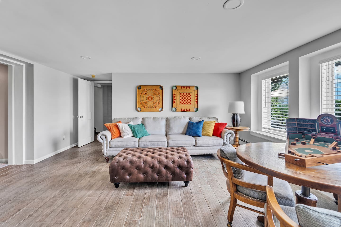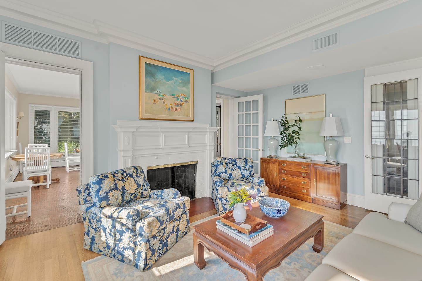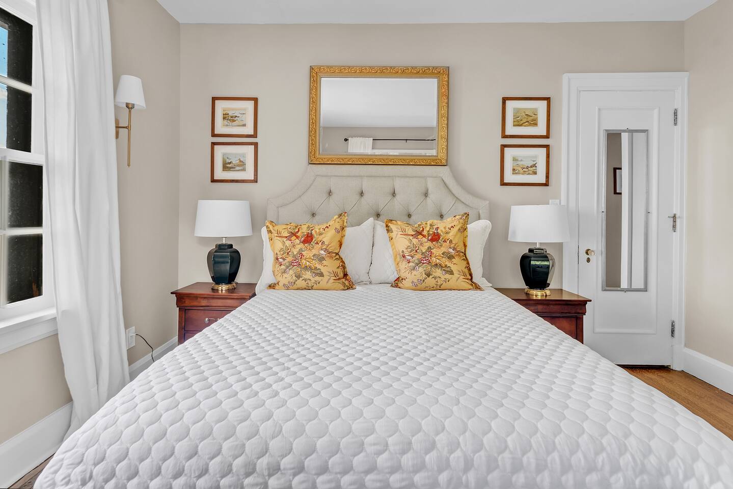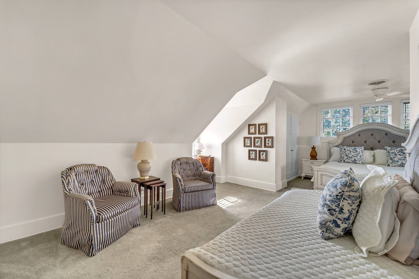 Welcome to your perfect Lake Michigan retreat! This spacious 8-bedroom Tudor mansion blends historic charm with modern comforts, offering a thoughtfully designed layout with ample room for families and groups. 🛏 Bedrooms & Bathrooms All 8 bedrooms include private en suite bathrooms with showers, TVs, and in-room Keurig coffee machines. • Main Floor Bedroom: Queen bed with ADA-accessible bathroom. • Primary Suite (2nd Floor): King bed, two fireplaces, private sunroom with lake views, and a luxurious bathroom featuring a standalone bathtub in front of a gas fireplace, rain shower, and customizable lighting. • Additional 2nd Floor Bedrooms: Two king rooms and one queen room. • 3rd Floor Nook: A cozy reading/chat space with a queen sleeper sofa. • 3rd Floor Family Suites: • Large Suite: 1 king, 1 twin, and a full-size crib. • Smaller Suite: 1 queen and 1 twin. • Walkout Basement Bunk Room: 3 bunk beds (5 twins + 1 full), perfect for kids. 🍽 Dining Spaces Multiple dining areas provide flexibility for group meals and cozy conversations: • Main dining room seats 8 (+2 at the bar) • Main floor sunroom seats 12 • Living room window nook seats 3 • Upper patio seats 6 • Lower patio seats 10 🍳 Kitchen & Coffee Enjoy a fully functional kitchen, plus: • Charcoal grill (upper patio) • Gas grill (lower patio) • Commercial coffee machine in sunroom for group brewing 🛋 Lounge & Living Areas You’ll find plenty of spaces to unwind or gather: • Living room with dual sofas for separate conversations • Cozy library with a moody ambiance—perfect for a chilly day • Primary suite sunroom for quiet work or reading • 3rd floor nook • Basement game room • Downstairs patio with 4 loungers, 2 sofas, and 2 deep-seat rockers 🎲 Game & Entertainment Zones The walkout basement is packed with family fun: • Game room with foosball and card table • Theater/arcade room with 80” TV, leather sectional, racing game, Buck Hunt, dart board, and a giant bean bag • Bunk room with toys and building blocks for young kids, including Quatro Legos, Zoobs, puzzles, wood trains, and Beanie Babies 🌊 Outdoor Fun & Lake Gear • Kayak room with 2 kids’ kayaks and 2 adult Origami Paddlers (kayak or stand-up paddle), life vests, and a cart to the beach • Outdoor games: glow-in-the-dark yard darts, whiffle ball, soccer balls, basketball hoop, fishing gear, kites, and a 30’ slip-n-slide • Bikes (2 medium-sized), beach wagon, sand toys, 14 beach chairs, and lots of towels • Tree swing at the edge of the yard for multiple kids • 7-person hot tub with lake views • Ping pong table on patio • Two fire pits for cozy nights and s’mores 🧺 Laundry Laundry’s easy with two new washer/dryer sets in the laundry room next to the kayak area.