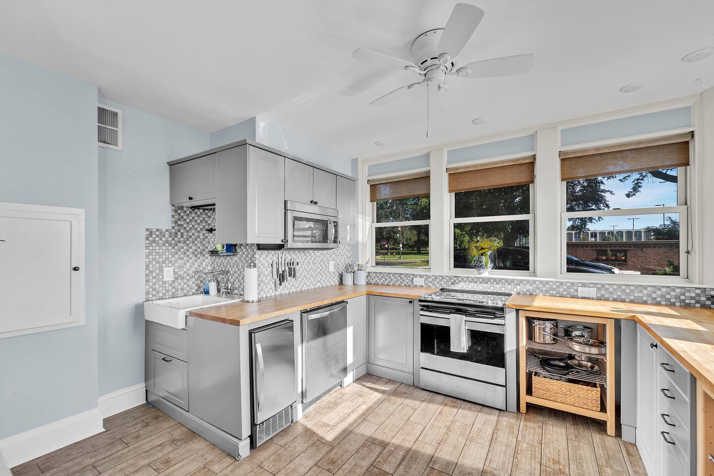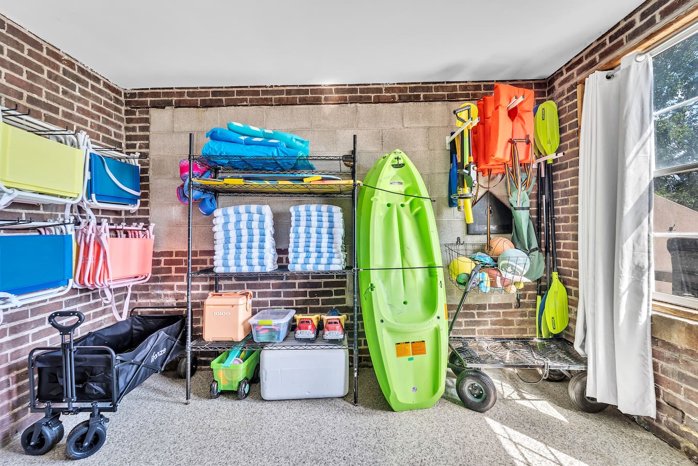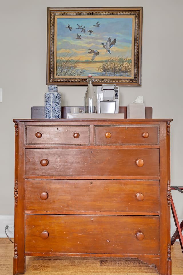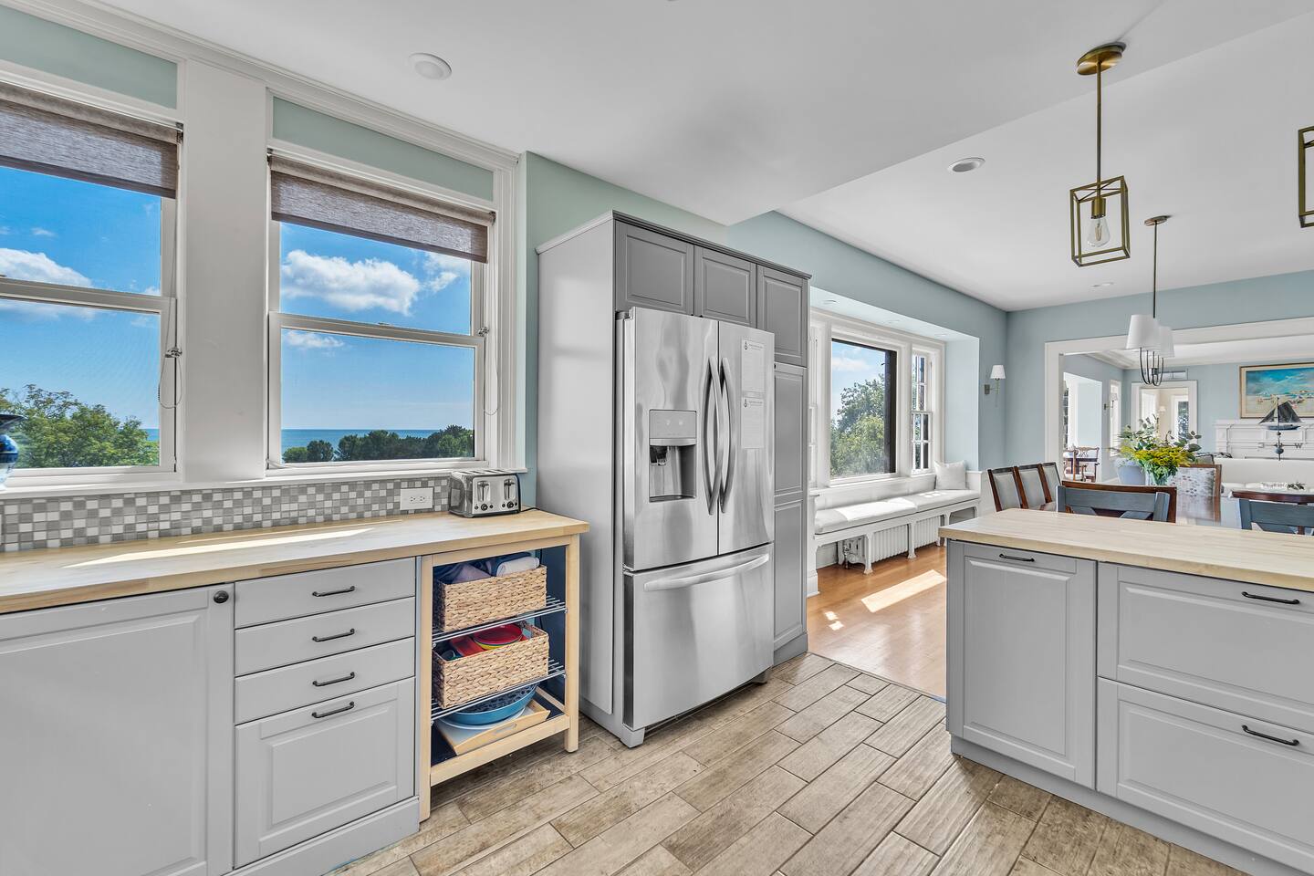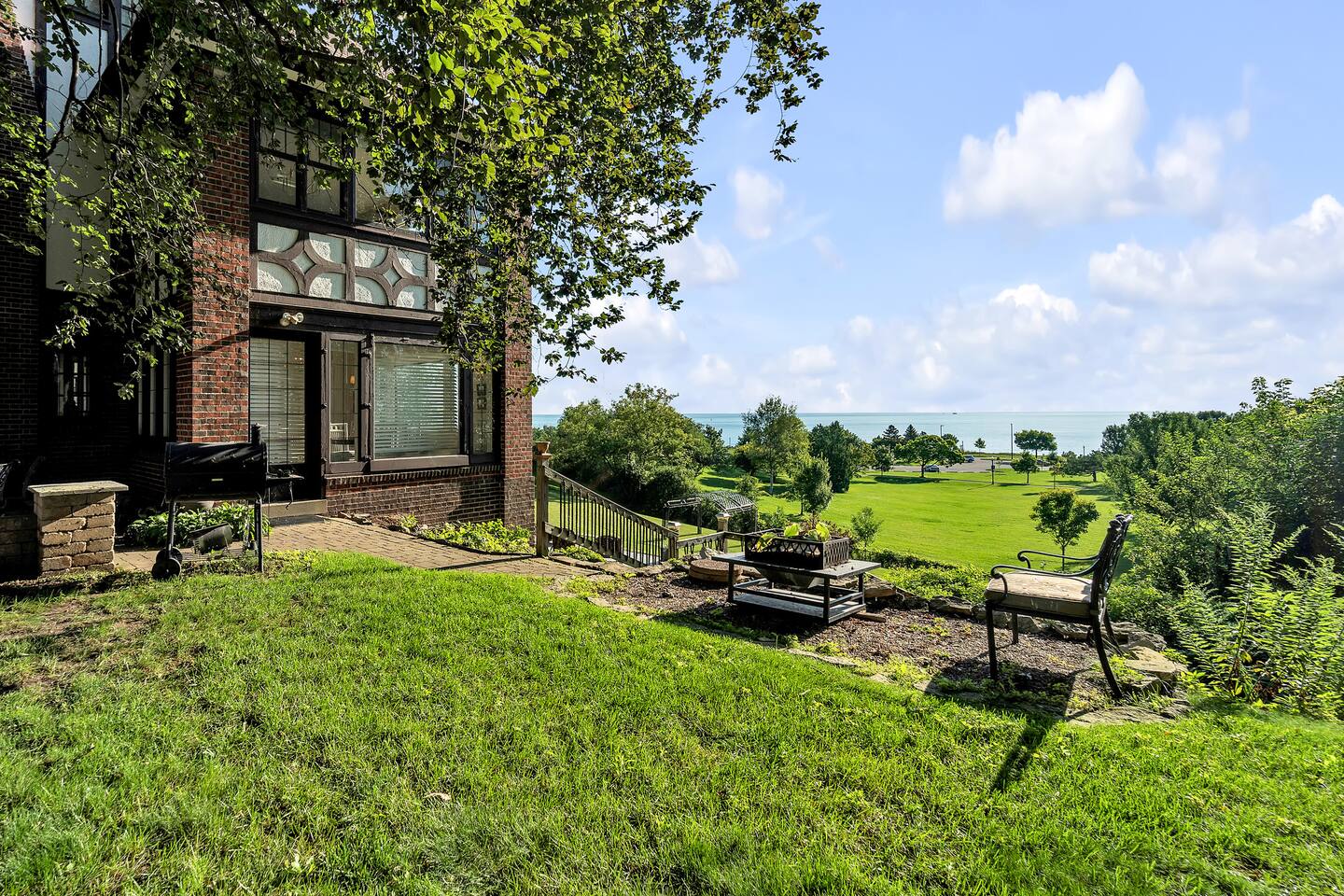 Enjoy direct access to Lake Michigan through Racine’s beautiful Samuel Myers Park, located just behind our one-acre yard. Stroll the newly installed nature boardwalk surrounded by native plantings and local birdlife, then head to the sandy beach along a calm, cove-protected shoreline. The jetty shields the area from large waves, making it ideal for kids to swim and perfect for kayaking. Water stays under 4 feet deep for over 150 yards—great for wading and paddling! For a fun adventure, kayak out to the jetty rocks and try your luck catching dinner! Our parking lot features spaces for 12 cars. Pets are welcome to stay with you in the house! $150 fee and we ask that all pets are closely monitored and crated when left alone in the house