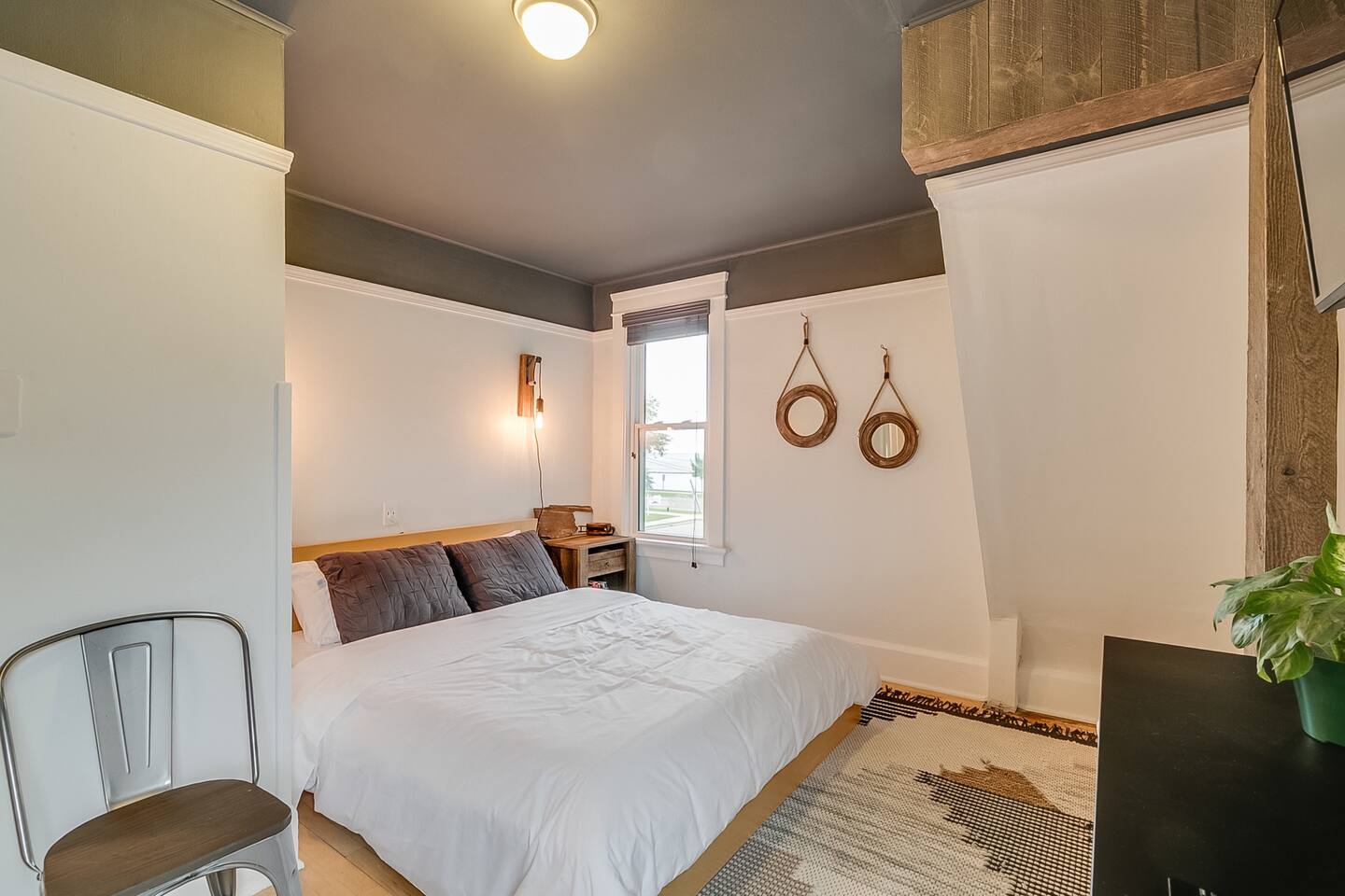 You’re invited to come enjoy amazing lake views from this adorable 1920s house! Our family used to live here, and we loved it way too much to sell it. The whole space has since been re-imagined for guests, including two full newly-renovated modern baths. Some interesting original features still remain, such as exposed Cream City brick and a wood burning fireplace. Lake view from living/sitting room and all bedrooms, within walking distance to historic downtown's awesome restaurants and shops.