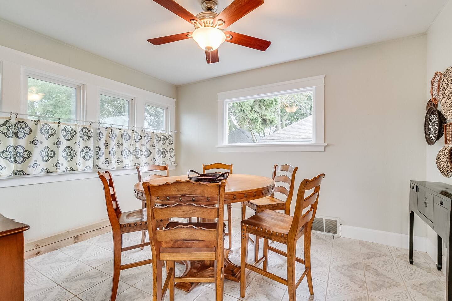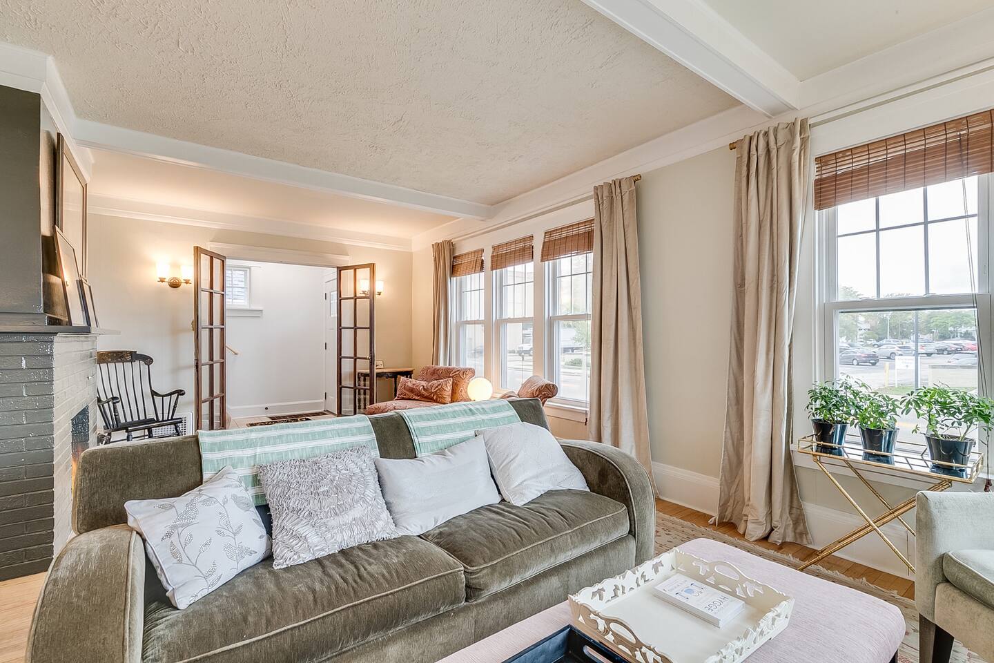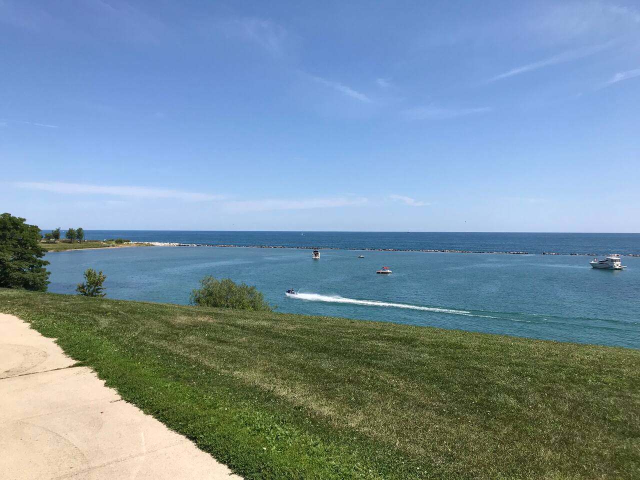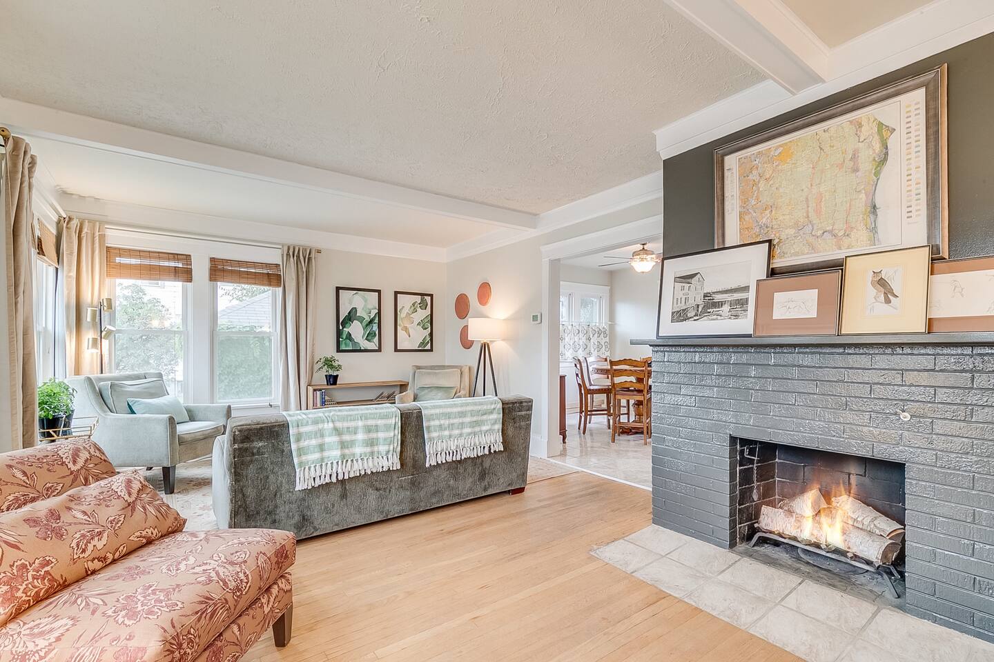 🏡 1920s charm + modern comfort • Lake views from the living room/sitting room and all bedrooms • Exposed Cream City brick + wood-burning fireplace • Stylish décor + lots of thoughtful touches (guests consistently mention how clean and well-appointed it is) 🛏️ Sleeping (3 bedrooms) • ALL bedrooms are on the 2nd floor • Primary: King bed • Bedroom 2: Queen bed • Bedroom 3: Full bed + twin trundle • By request: full or twin air mattress + up to 2 pack-n-plays • Please note: no sleeping on couches 🛁 Bathrooms (2 total) • Two newly renovated modern baths • Upstairs bathroom features: double sinks, custom walk-in shower with multiple jet shower heads + separate soaking tub LOCATION & WALKABILITY 📍 Prime little lakefront spot • “Main Street” + downtown Racine: about 7 blocks (easy walk) • Lake Michigan: directly across the street • Small beach: ~3 blocks — a favorite spot to hunt for sea glass (Sometimes high water limits access to this smaller beach) • North Beach (main swimming beach): ~2 miles away BEACH GEAR PROVIDED 🏖️ We’ve got you covered • Towels • Cooler • Sand toys • Beach blanket • 2 comfy beach chairs Need something else? Just ask! We’re nearby and happy to help. AMENITIES ☕️ Kitchen + comfort extras • Fully stocked kitchen (pots/pans, utensils, spices, oils, etc.) • Coffee maker + French press • Coffee, cream, sugar • Crock pot • Hair dryers • Iron + ironing board • Shampoo/conditioner/body wash • High chair + kids’ toys OUTDOOR SPACE 🔥 Small but usable • Small front sitting area (no backyard) • Room for the charcoal grill • Lakefront paths/green space across the street feel like your “extra backyard” for walks and bike rides GOOD TO KNOW 🚗 Road noise We’re near a fairly busy corner. Most guests aren’t bothered, but we provide box fans in each room for white noise. HOUSE RULES 🚭 No smoking No smoking of any kind inside the home. Violations may result in the stay being interrupted and/or remediation charges.